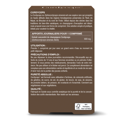 Les comprimés Cordyceps s’adressent aux personnes désireuses de renforcer leur organisme face à la fatigue, ainsi qu’aux sportifs qui souhaitent optimiser leurs performances physiques et améliorer leur récupération après l'effort, mais aussi aux femmes et aux hommes qui connaissent une baisse de libido.