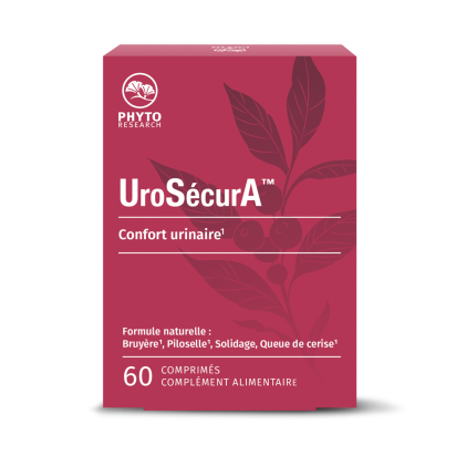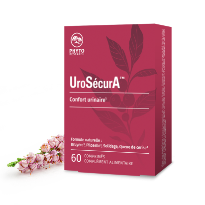 UroSécurA, une combinaison unique de Bruyère, de Piloselle, de Solidage et de Queue de Cerise pour favoriser le confort, l’entretien et la protection de l’appareil urinaire.