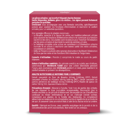 ♦ Association possible avec la formule UroSécurA Flash qui cible particulièrement les inconforts urinaires intenses pour une action spécifique, profonde et durable.